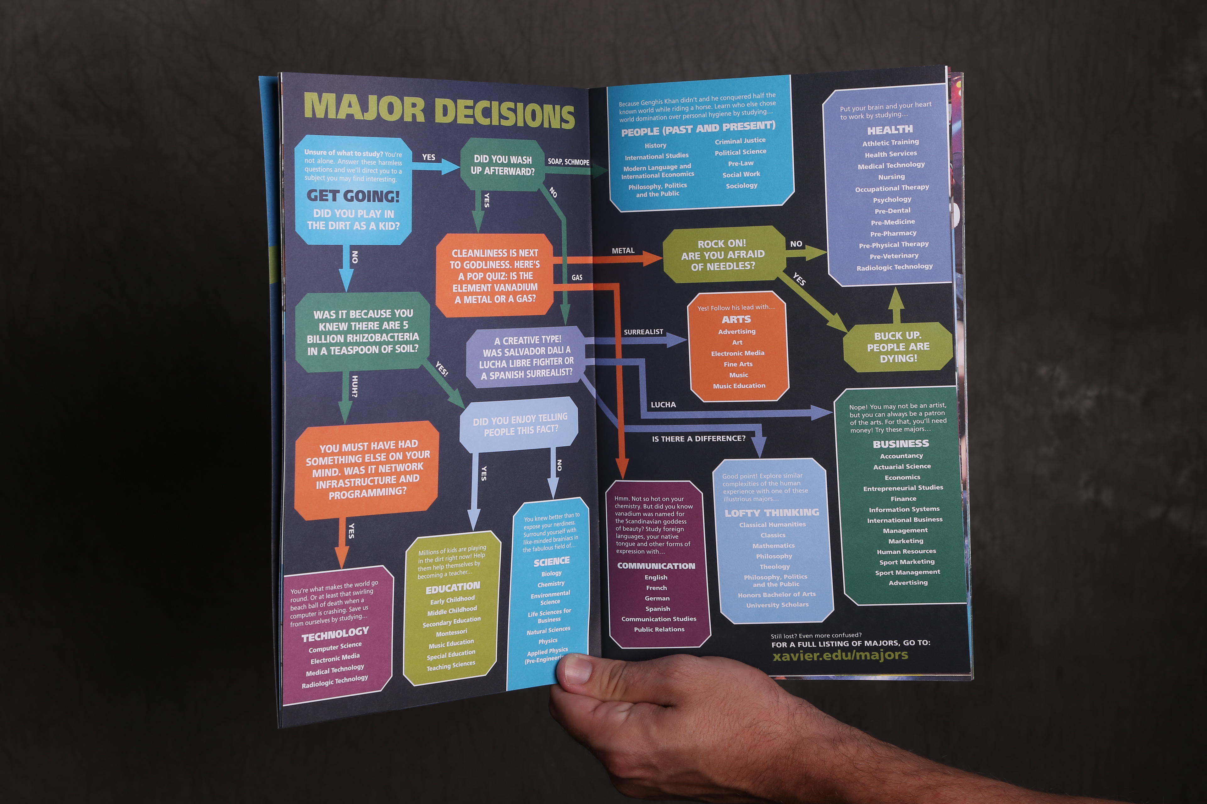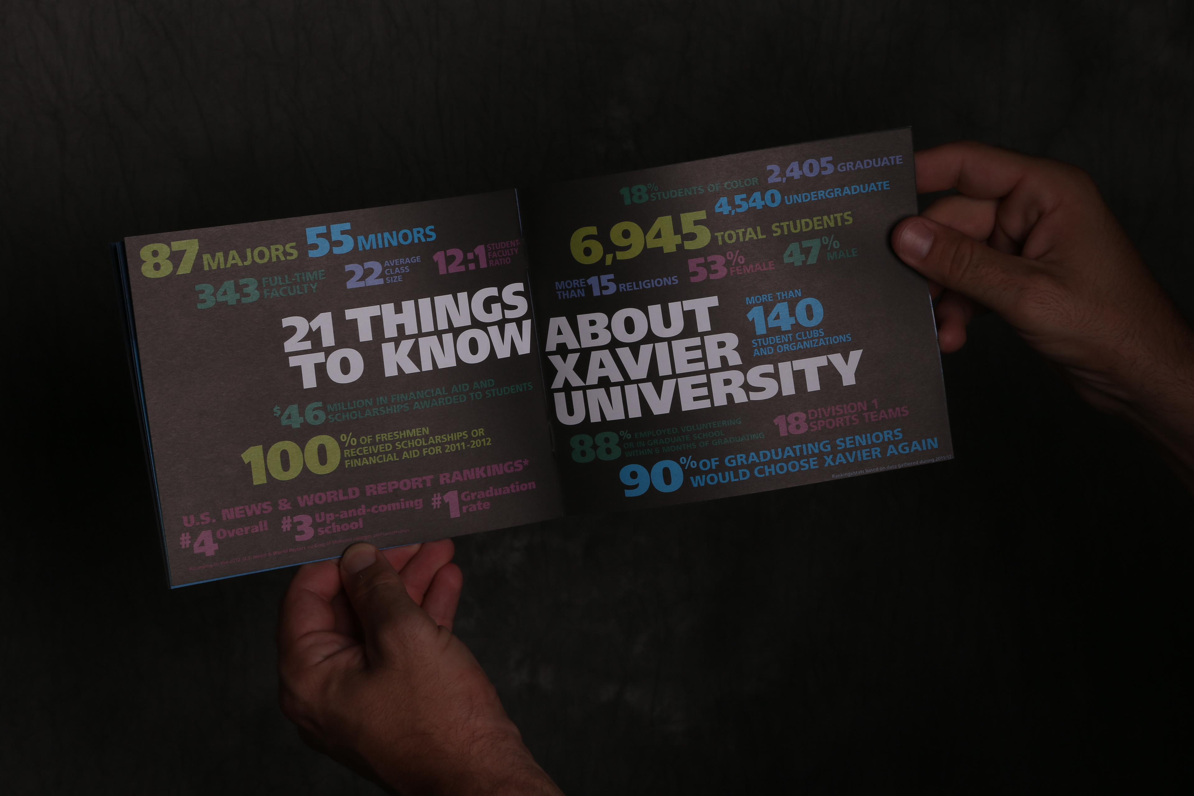 During my time at Xavier University, I was the Creative Lead for all Undergraduate Admissions materials. Over the years, dozens of annually produced pieces were put in place without any real strategy, consistency or audience consideration. I suggested that we rethink the entire admissions package and ran the brainstorming and strategy that drove us into the yearlong process of building out the new pieces.